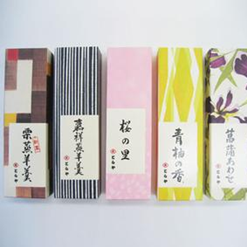 战前,百货店的包装纸以质朴的牛皮纸为主流,而三越的包装纸则引入时兴的热点,如新馆的蓝图和干支的设计等,没有所谓的固定的包装纸,战后不久,1950年高呼,要制作圣诞用的能够成为百货店象征式样的原创包装纸,在给战后的灰暗世态以光亮的想法的基础上,三越在日本做了首次尝试。着手包装纸设计的是画家猪熊弦一郎,命名为“华丽绽放”的设计,是画家在千叶信步游走时,看到海岸波浪拍打清洗岩石,想到以“不屈服于海浪的顽固坚强”为主题而诞生的。漫画家柳漱隆,当时还是三越宣传部的职员,是他请求猪熊画家为包装纸做设计,然后去取设计出来的作品,当他看到设计画时,先是吃了一惊,然后将商品包装起来一看,恰似鲜花绽放让人眼前一亮,他由衷地佩服道,“不愧是猪熊大画师”。后来,柳濑隆亲手写上“mitsukoshi”的商标,直到现在半个世纪多以来,一直都作为三越的象征来使用。其他百货店开始使用各自原创设计的包装纸,也是自从三越开始使用这种包装纸之后。